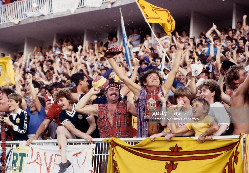 De pronto te sorprenderá saber que la misma selección de fútbol de Escocia que ves desde hace años sin pelear ni siquiera the Olaya South Friendship Tournament, y de la que de vainas distingues hoy a Andrew Robertson y a dos o tres más de la Premier, en los 70 y 80 tenían una de las mejores nóminas de Europa. Por esos años a los escoceses les sobraban jugadores fogueados y habituales en el durísimo fútbol inglés, algunos de ellos eran la base de clubes campeones de Europa, e incluso un par eran jugadores de clase mundial. Como equipo sabían a lo que jugaban: tenían un estilo de choque – pelotazo – bombazo/ollazo – pivoteo – rebote que todos los rivales conocían, que si quieres puedes decir que era terriblemente rústico, pero que al final era bastante efectivo. Y para rematar, eran seguidos por una de las mejores hinchadas del universo, la Tartan Army, compuesta por miles de hinchas que los seguían por toda Europa, y los alentaban todo el puto partido borrachos hasta los jarretes pero portándose relativamente bien (los hinchas escoceses = el tío de uno que cuando se emborracha es todo cheverón; los hinchas ingleses = los tíos que al emborracharse se ponen a pelear con el dueño de la casa).