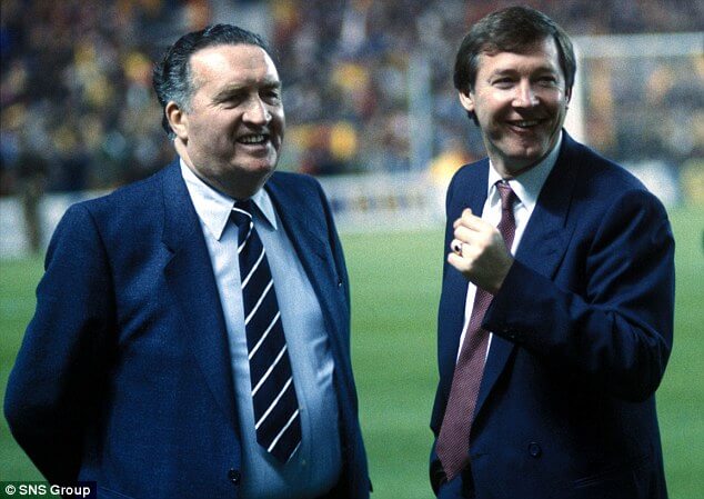Big Jock Stein y un joven Alex Ferguson antes de un partido en 1985